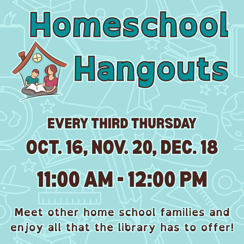 From October to December, the Library will be hosting Homeschool Hangouts on the third Thursday of each month. These are opportunities for home schooled children and their families to meet and enjoy all that the Library has to offer, together!