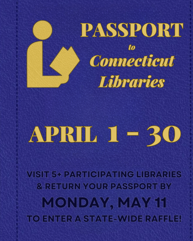 This April, Clark Memorial Library and more than 100 other public libraries in Connecticut will once again be taking part in the Connecticut Library Association‘s Passport to CT Libraries Program! We hope that participants will take the opportunity to visit as many participating libraries as possible to experience and appreciate their unique architecture, vibes, and collections. Remember, you can use your library card at any Connecticut library!
